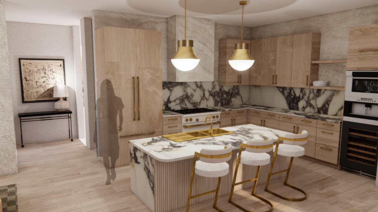 As a designer, my approach blends natural materials, functional beauty, and a deep sense of well-being in every space I create. My process begins with understanding the flow and purpose of a home, then layering in organic textures, sculptural forms, and a palette. My creative process includes hand rendering, inspiration imagery, and 3D visualizations, all of which help translate ideas into tangible, cohesive designs.